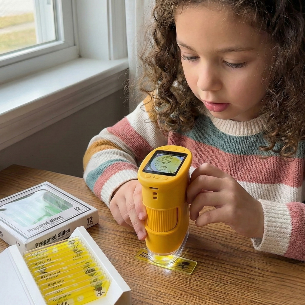 The microscope is kid-safe, parent-approved, and built to handle everyday drops, bumps, and adventures. It’s made for real exploration, not sitting on a shelf.
